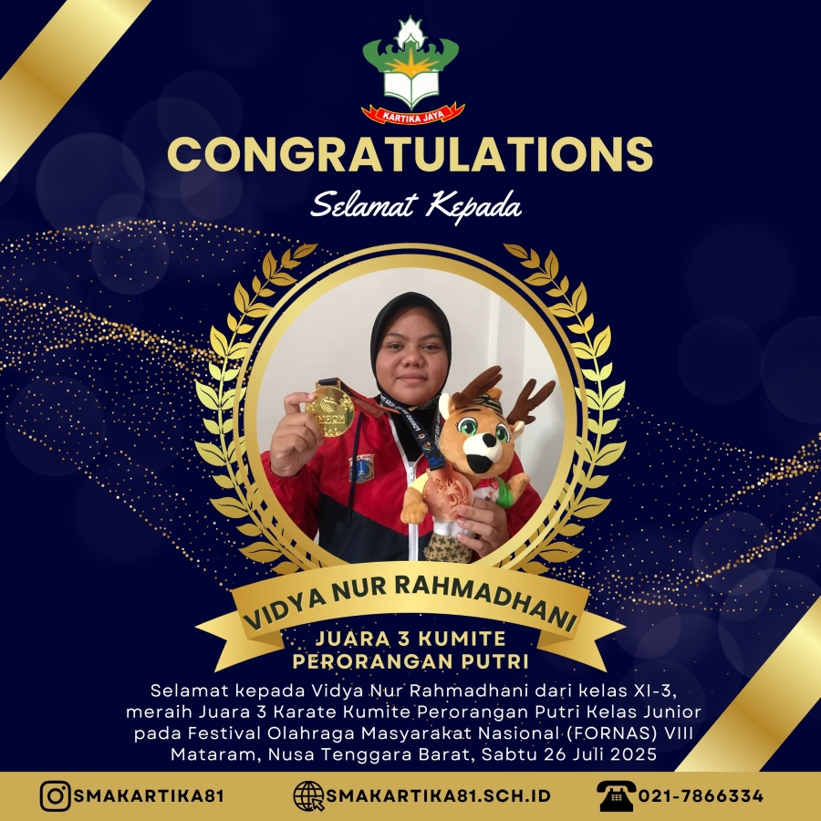 SELAMAT KEPADA VIDYA NUR RAHMADHANI - JUARA 3 KUMITE PERORANGAN PUTRI - FESTIVAL OLAHRAGA MASYARAKAT NASIONAL (FORNAS) VIII MATARAM, NUSA TENGGARA BARAT, SABTU 26 JULI 2025.